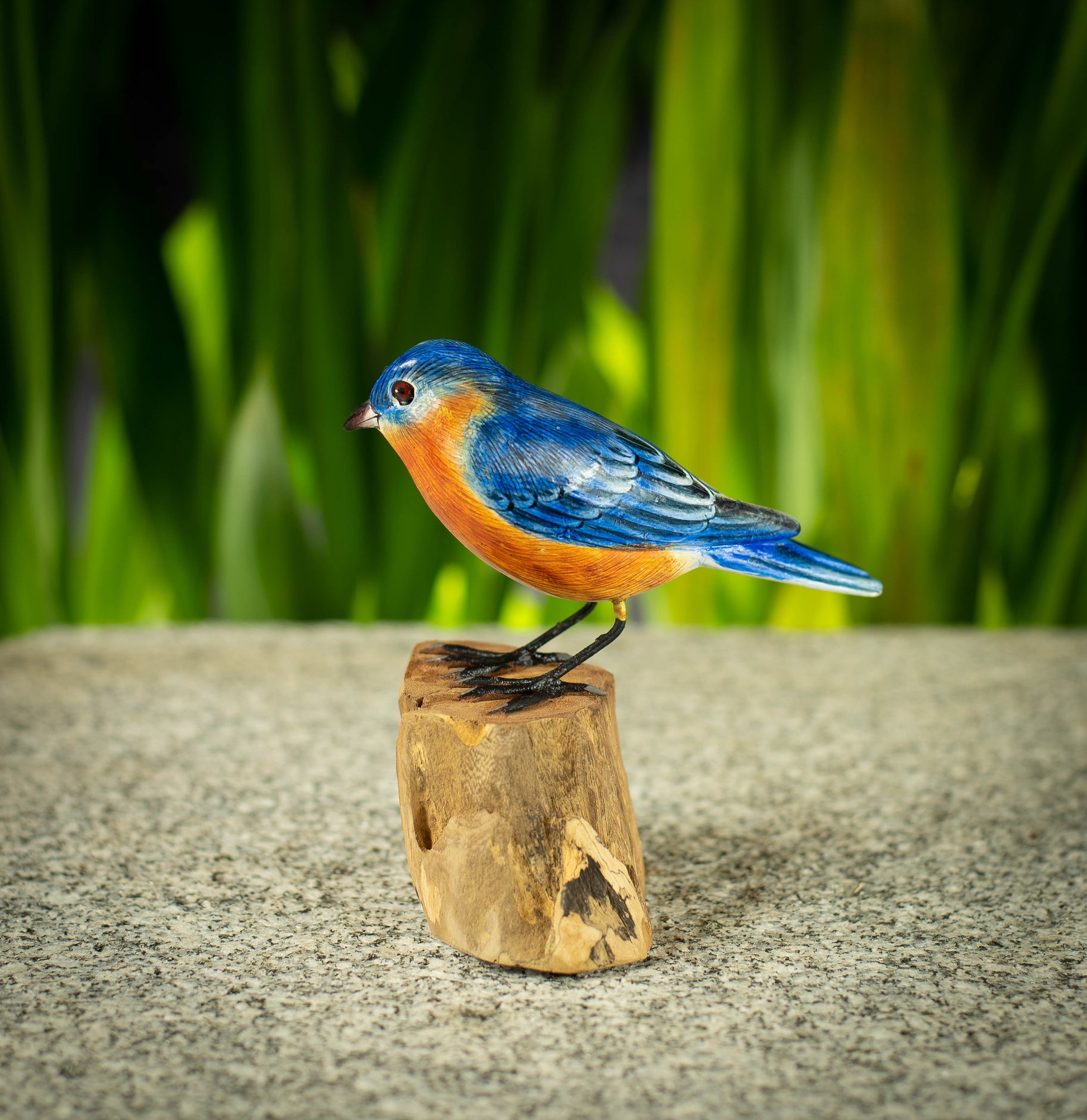 Hand Made Hand Painted Wooden Sculpture of an Eastern Bluebird
